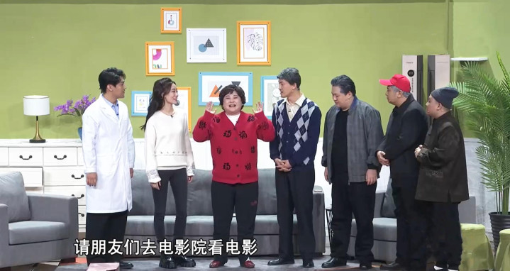 在节目最后,她满脸笑容地对观众说:“大年初一,请朋友们去电影院看电影。”