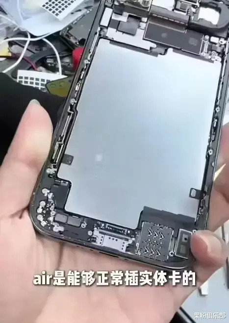 从热搜图片和视频来看,部分华强北商家通过独立开模,在 iPhone Air 的主板底部开出一个新的空间。