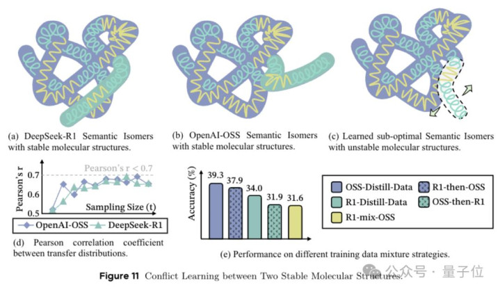 这在执行中有个很典型的风光,从R1和OSS两个不同强推理模子中蒸馏出的推理轨迹,语义层面的内容相似度高达95%,但混在总共检修,模子反而崩溃了。