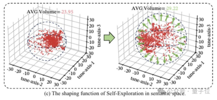 量化分析默契,加上探索行动之后,模子在语义空间里的想维笼罩范围能从23.95扩大到29.22。