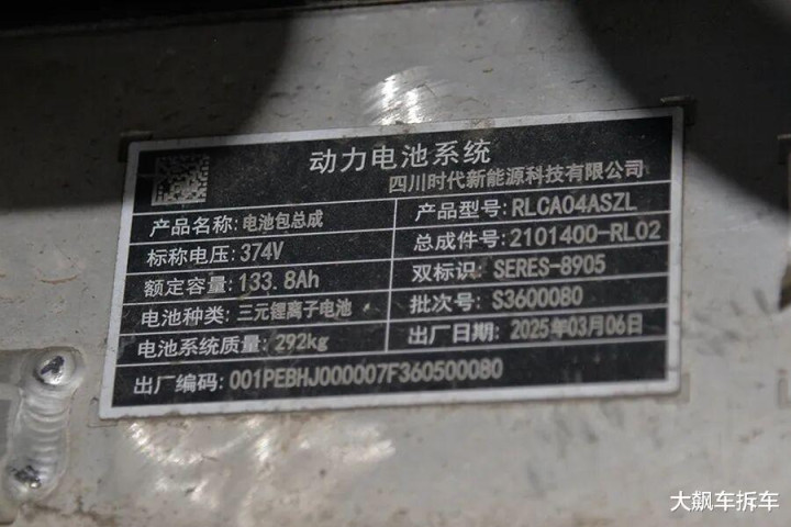 三元锂电板来自于宁德时间,容量133.8安时,使命电压374伏。