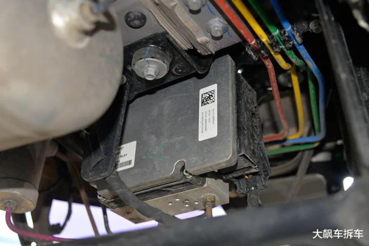 这辆车经受空气弹簧加软硬可调避震器,避震筒上能看到转机软硬的电磁阀。