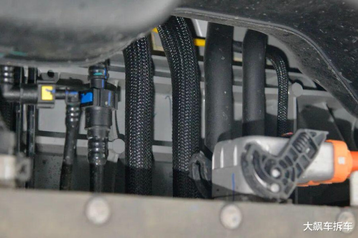 PTC加热模块在电板前端,因为是增程版车型,是以莫得热泵空调,热量泉源主要来自于这个PTC加热模块以及增程器的热量,而纯电版块则是热泵为主,PTC为辅。