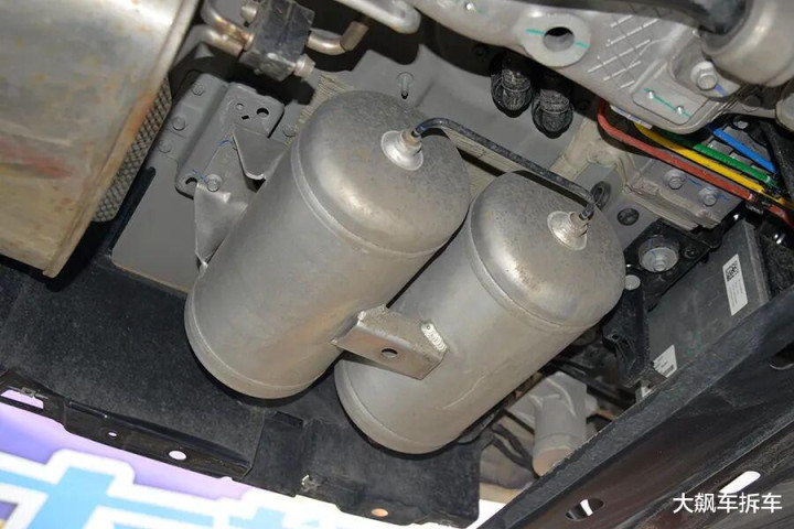 车尾底部还有两个空气悬架储气用的高压气甁。