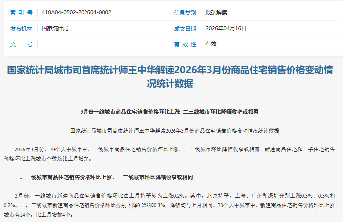 [大家网财经轮廓报说念]4月16日,国度统计局发布的最新数据透露,3月份70个大中城市房价数据开释出明确的企稳信号。世界新址和二手房价钱高涨城市个数大幅增多,其中一线城市新址与二手房价钱环比双双“转正”,市集积极身分合手续积蓄。