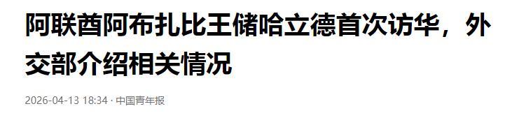 中国后生报:2026-04-13:阿联酋阿布扎比王储哈树德初度访华,酬酢部先容相干情况