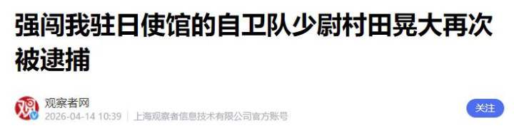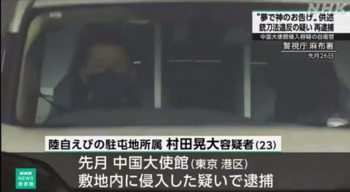 不雅察者网:强闯我驻日使馆的自保队少尉村田晃大再次被逮捕